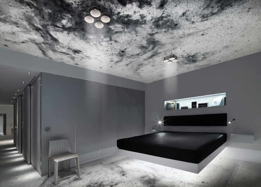 Designed by artist Michael Najjar, the Space Suite transports you to the stars with silver, black and moonscape textures, a gravity-defying, sleek. floating bed, pictures of galaxies, hovering astronauts and models of rockets, together with curated selections of literature, music and films about space travel, as well as original works by the artist. The perfect place for your inner 'Rocket Man' to recharge.